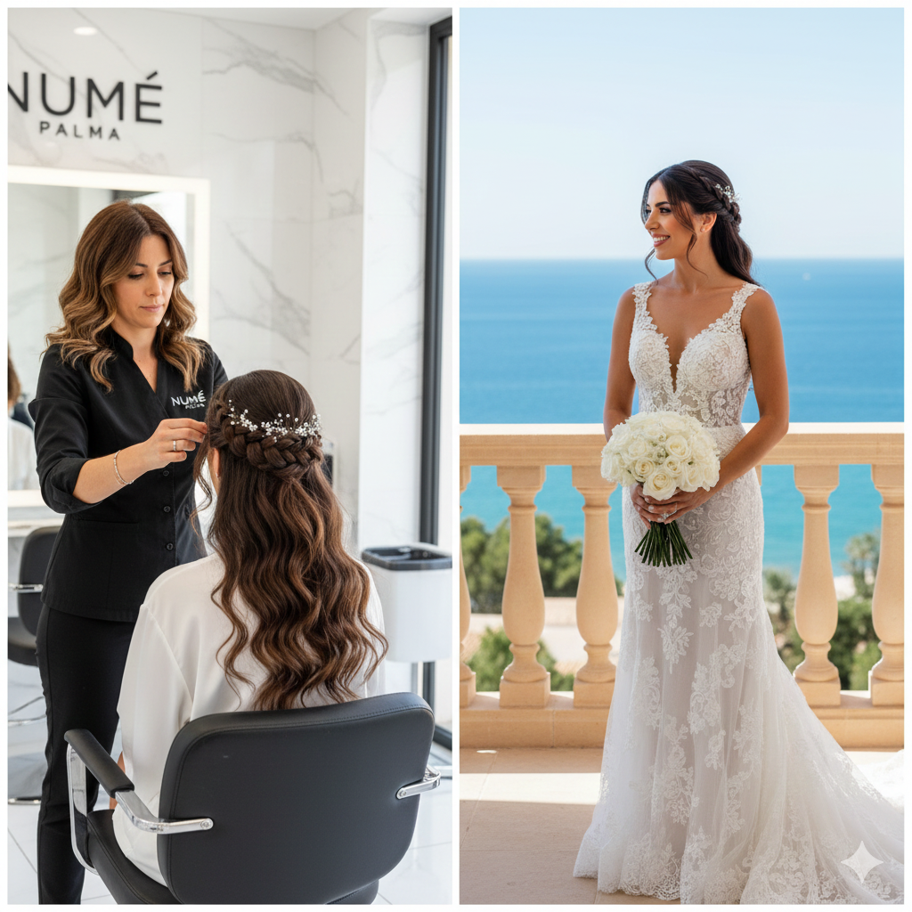 Nume Palma specializes in bridal hair dressing that is tailored to the individual bride. The salon offers a modern, luxurious environment where each client receives personalized consultation and styling. Before the wedding day, the Spanish hair experts at Nume Palma discuss the bride’s vision, gown style, and accessories, then create a detailed plan for the hairstyle. Trial sessions are available to test different looks, ensuring that the final style matches the bride’s expectations and complements her features. This careful approach allows the team to refine details and make adjustments for the perfect outcome.